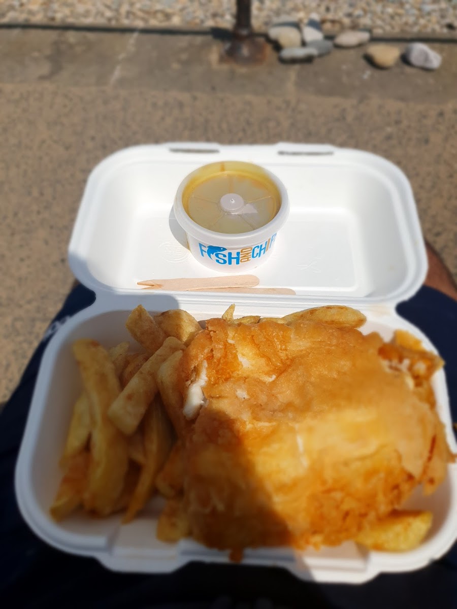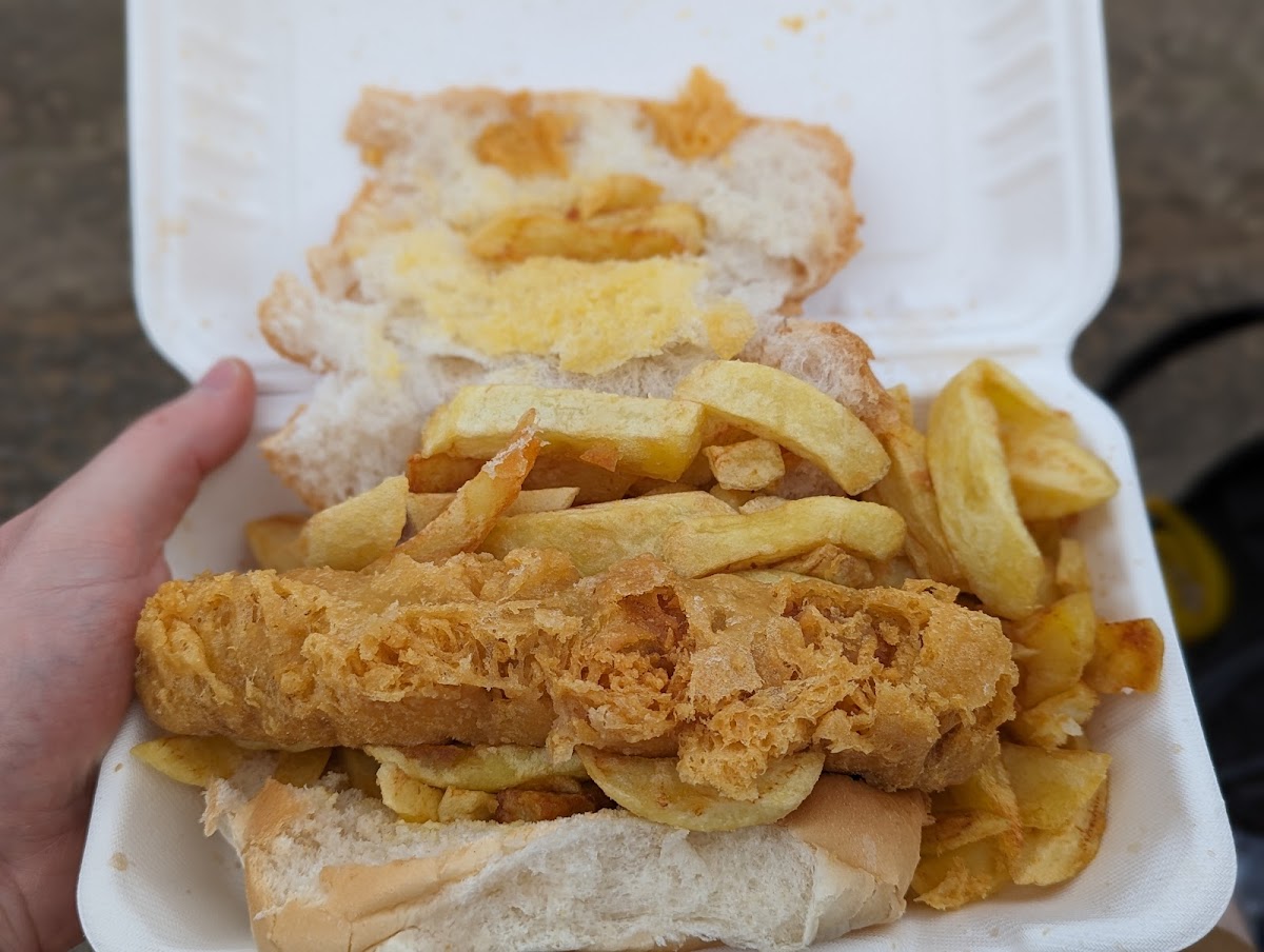 The menu keeps things refreshingly simple, focusing on what it does best. Fish and chips are the clear highlight, served hot, crisp, and satisfying without unnecessary extras. The fish arrives generously sized, wrapped in light batter that stays crunchy while the inside remains soft and flaky. Chips are hearty and comforting, exactly how a seaside supper should be. Alongside that, the battered sausage offers a classic alternative, full of flavour and cooked just right. For something a little different, the chip butty delivers pure nostalgia, combining soft bread with freshly cooked chips for an unfussy but deeply comforting bite.